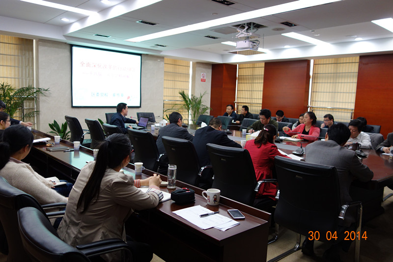 此次培训活动由区委党校崔传章教授授课,重点解读《中共中央关于全面深化改革若干重大问题的决定》,并结合2014年全国“两会”,从全面深化改革的重要意义、总体战略思路及系统战略部署三个方面,图文并茂地剖析了“习式整风”、“李克强经济学”及当前宏观政治经济形势。